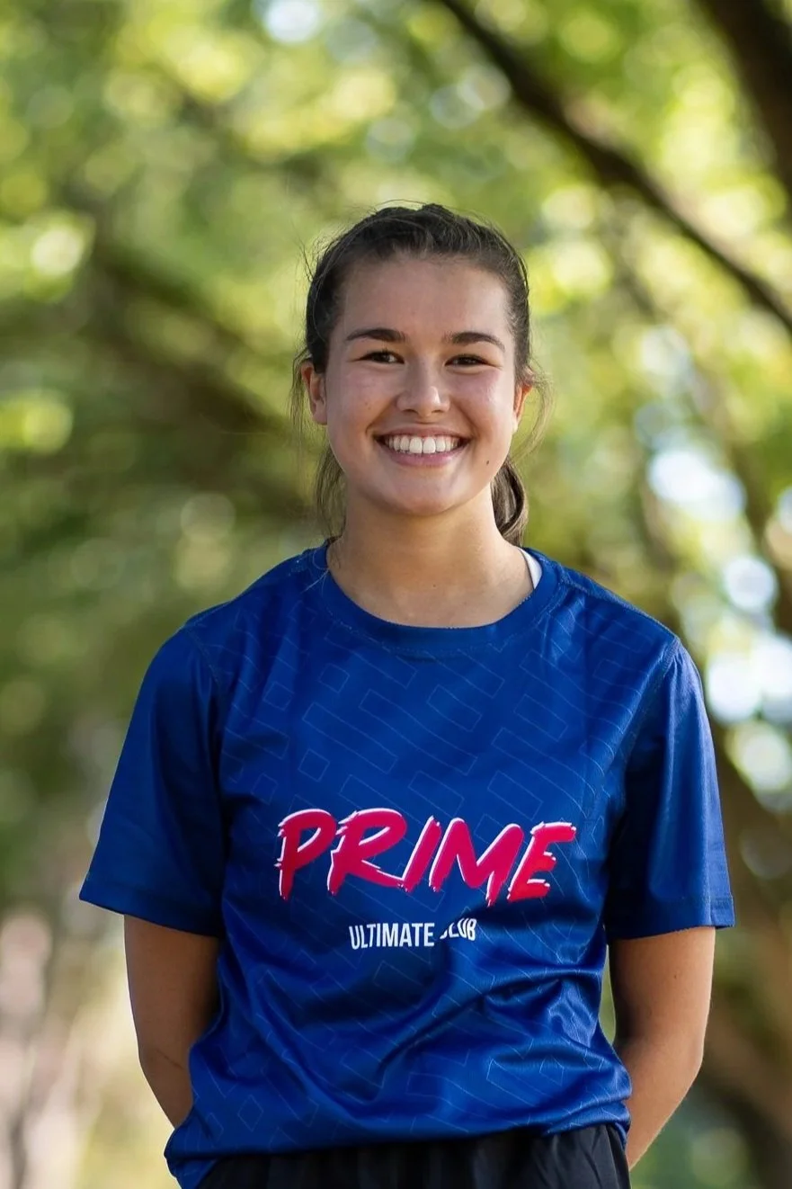 Lauren has represented Canada at the U20 and U24 levels and is currently in her second year with the UBC Women’s team. With Prime, she has won four National Titles and competed with Red Flag Ultimate from 2022 to 2024.